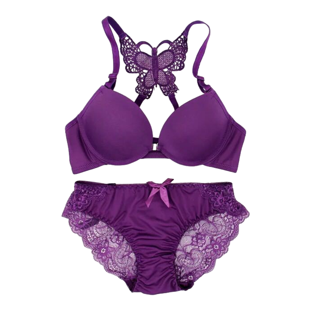 Spandex Styles Push Up Bra Panty Set For Women Purple PDDPurple